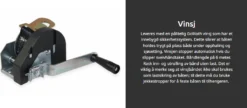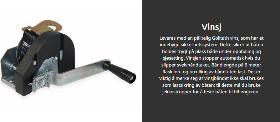 - Pålitelig vinsj med automatisk brems: Vinsjen sikrer enkel inn- og utrulling av båndet. Båten står trygt selv om du slipper sveiven. Du kan også trekke ut båndet uten å sveive.