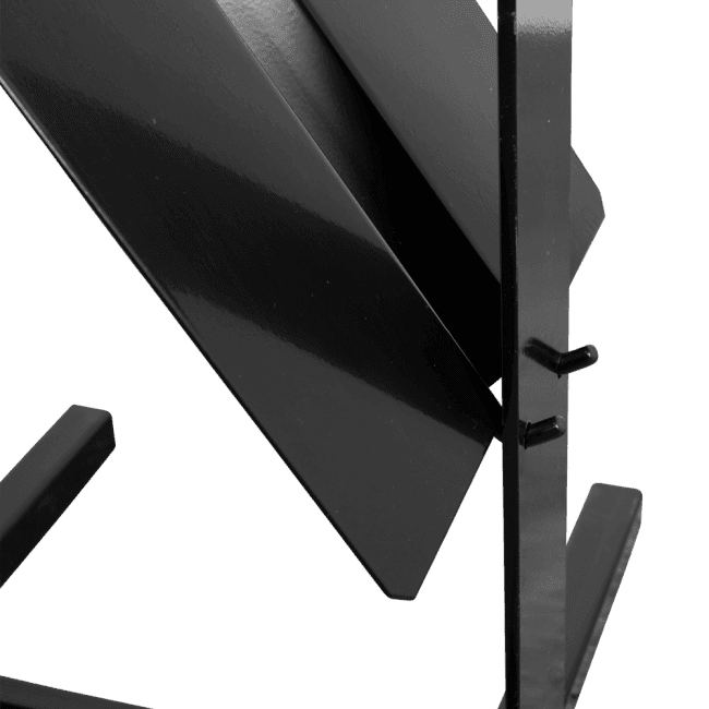 - Laget av svartlakkert stål