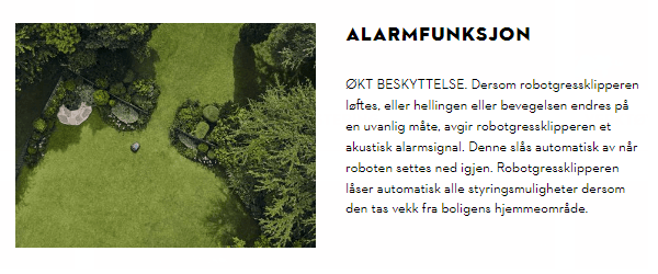 - Robotklipper for plener opptil 1500 m² og stigninger opptil 40 %
