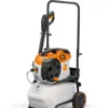 Takket være bajonettkoblingen kan du raskt og enkelt koble den roterende børstevalsen direkte til pistolen, sprøytelansen eller STIHLs teleskopiske sprøytelanse som er tilgjengelig som tilbehør på høytrykksvaskeren. Børstene kan også skiftes enkelt og uten verktøy ved hjelp av hurtigfestet. Den roterende børstevalsen har en arbeidsbredde på 30 cm og en sprutbeskyttelse for å beskytte personer og omgivelsene mot vannsprut.