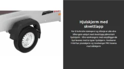 Med utenpåliggende hjul får tilhengeren gode kjøreegenskaper og lav innlastingshøyde. Bremser fra en av verdens mest anerkjente leverandører og rustfrie bremsekabler gir 6277-modellen lengre levetid og lavere vedlikeholdskostnader. De pålitelige bremsene gir ekstra trygghet og en forbedret kjøreopplevelse, spesielt på lengre turer på veier med høy fart og tung last. Bremsene gjør det mulig å parkere hvor som helst og gir kortere bremselengde.