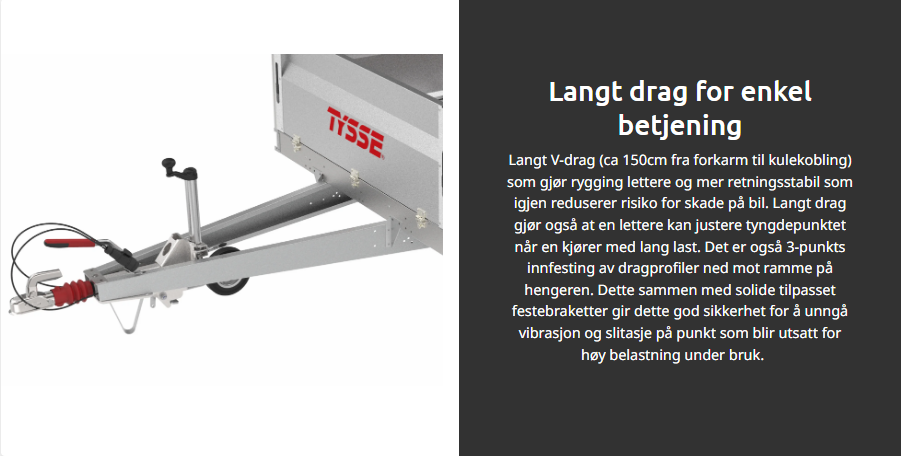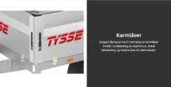 Oppdag Tysse 6301, en tilhenger som kombinerer brukervennlighet og robust design med smarte løsninger som gjør jobben enklere og mer effektiv. Hvem har ikke opplevd frustrasjonen med å prøve å treffe alle hengslene når karmen skal settes på igjen? Med våre tilhengere med nedfellbare sider er dette ikke lenger et problem. De solide, egendesignede hengslene i rustfritt materiale har et spor som gjør det enkelt å sette på karmen. Du legger bare karmen ned i sporet og fører den på plass. Så enkelt, så genialt.