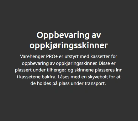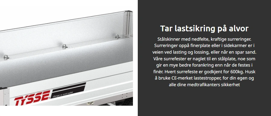 PRO+ utgaven av Tysse sine varehengere skiller seg ut fra PRO modellene med at understell er ytterligere forsterket, den tåler høyere punktbelastninger og har forsterkninger som muliggjør påkjøring av tyngre maskiner. Tilhengeren har også tilrettelagt med eget rom under henger for plassering av oppkjøringsskinner. Modellene leveres med totalvekt 2600kg eller 3500kg. I tillegg at PRO+ modellene er ekstra forsterket, leveres disse modellene med elegante aluminiumskarmer. Svært enkel betjening av karmlåser, avtagbare hjørnestolper og lette karmer med solide hengsler gjør at disse er svært enkle å håndtere. Varhenger PRO+ leveres med stålplate i bunn som er montert oppå finèrplate. Dette gir ekstra styrke og holdbarhet for tilhengeren over lang tid. Standard på PRO+ er også LED-Lys som i tillegg til å gi den et røffere utseende, også har sine fordeler med at det er et vanntett system. Dette gir lengre levetid og er samtidig mindre energikrevende. Solide surrefester forankret i stålskinne gir også svært god mulighet for god sikring av last. Hvert surrefester er testet og godkjent for 600kg.